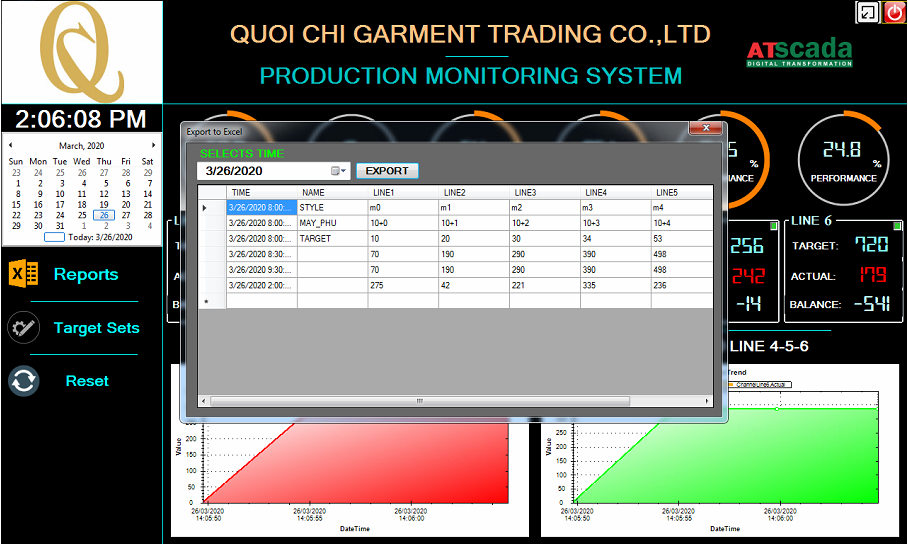 Ngoài ra, hệ thống còn hỗ trợ công cụ báo cáo tình hình sản xuất rất tiện ích. Giao diện file báo cáo chi tiết, trực quan, dễ hiểu. Và đầy đủ các thông số sản xuất để phục vụ việc đánh giá, nắm tình hình.