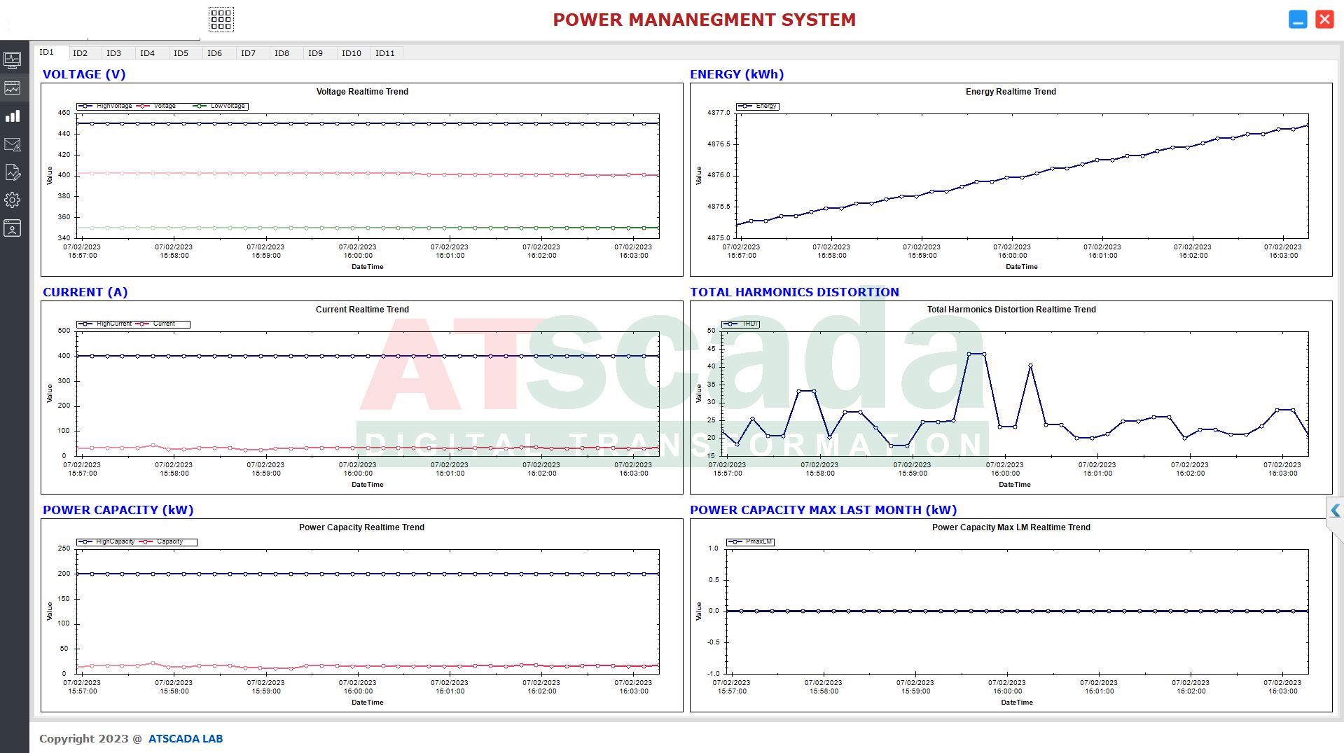 Phần mềm giám sát điện năng 11 đồng hồ. Phần mềm được thiết kế dưới các dạng như webform, winform cho phép giám sát từ xa hoặc tại chỗ. Phần mềm giám sát một lúc đồng thời nhiều khu vực cùng một lúc. Với giao diện thân thiện, tốc độ xử lý dữ liệu nhanh chóng giúp người dùng dễ dàng sử dụng.