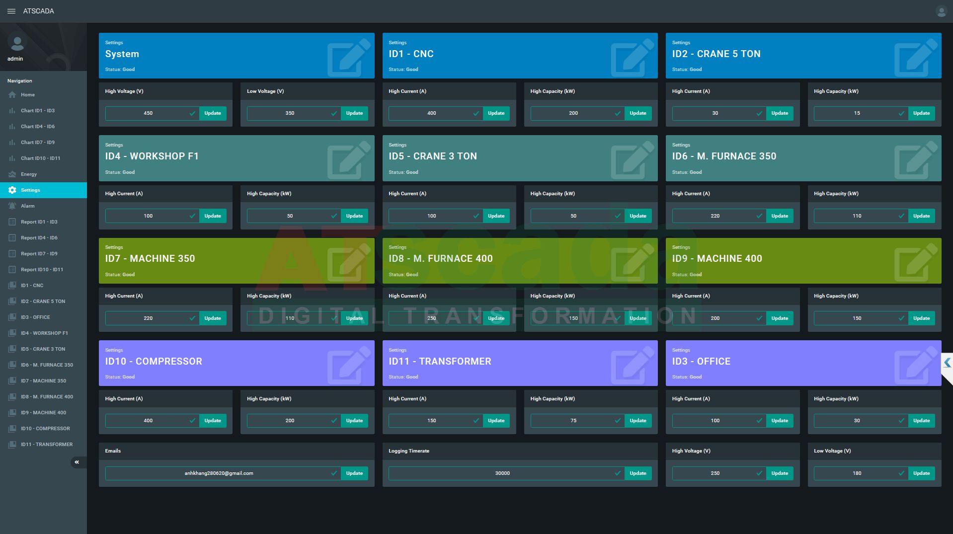 - Cho phép cài đặt các ngưỡng giá trị cần giám sát, vượt quá ngưỡng cài đặt sẽ cảnh báo qua email.