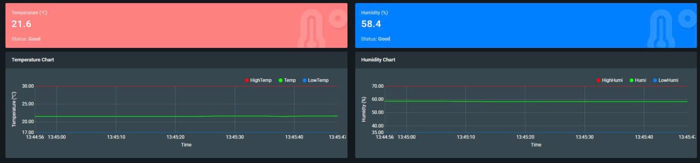 - Hiển thị giá trị nhiệt độ, độ ẩm, biểu đồ realtime.