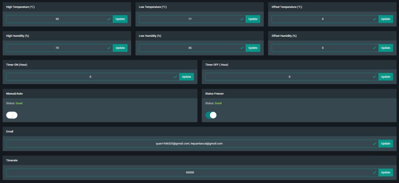 - Cài đặt ngưỡng cảnh báo Nhiệt độ, Độ ẩm.